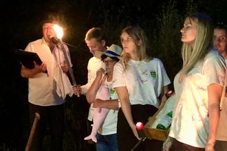 Gruppenfoto Kerwe-Jugend mit Fahnenträger Hans Denig