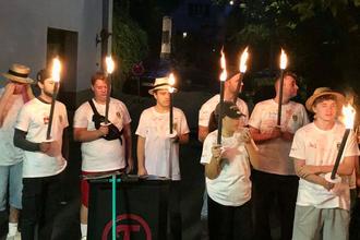 Fußgruppe des Verkehrsvereins in historischen Kostümen