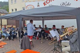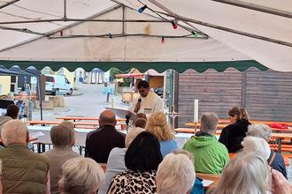 Ein besonderer Moment war der Sonntagvormittag: Der ökumenische Gottesdienst fand im Festzelt statt und wurde von Pfarrerin Sarah Schulze und Kaplan Praveen Isukupalli gemeinsam geleitet. Für die musikalische Umrahmung sorgte der evangelische Posaunenchor Hambach-Winzingen unter der Leitung von Landesposaunenwart Traugott Baur. Besonders geschmunzelt wurde, als die Pfarrerin mit einer Schorle auf das Leben anstieß – ein Moment, bei dem sich viele im Publikum wohl auch ein Gläschen zum Anstoßen gewünscht hätten. Der anschließende Frühschoppen mit Weißwurstfrühstück bei der Feuerwehr war ebenso gut besucht wie das gemütliche Kaffee- und Kuchenangebot in der Grundschulturnhalle, organisiert vom Gesangverein.