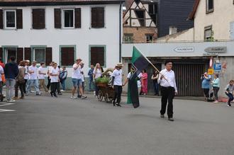 Der Kerwe-Umzug angeführt von Hans Denig mit Fahne und der Kerwe-Jugend