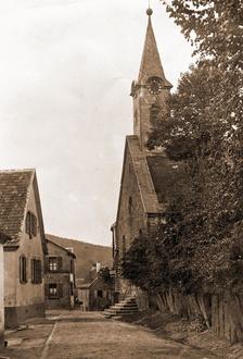 Die ehemalige Esthaler Katharinenkirche mit dem Pfarrgarten um das Jahr 1930.