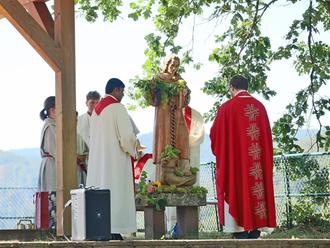 Das Fest, das alljährlich am Sonntag vor oder nach dem 8. August gefeiert wird, zog auch in diesem Jahr zahlreiche Gläubige an, die sich bei bestem Wetter zu Fuß oder mit dem Auto auf den Weg nach Lindenberg machten. Um 10 Uhr begann das Wallfahrtsamt, zu dem Gemeindemitglieder der Pfarrei Hl. Michael Deidesheim Erstlingstrauben mitbrachten. Diese Trauben wurden traditionell genutzt, um die Statue des heiligen Cyriakus zu schmücken – ein Symbol des Dankes und der Bitte um Beistand in allen Anliegen.