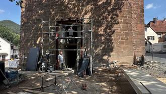 Lambrecht. (hk) Der Bau des neuen Westeingangs an der ehemaligen Klosterkirche schreitet voran, und ich wollte mir persönlich ein Bild von den Arbeiten machen. Neugierig bin ich zur Baustelle gefahren und traf dort auf Thomas Wagner, der für die bauausführende Firma Dick tätig ist. Freundlich und kompetent gab er mir einen umfassenden Einblick in den aktuellen Stand der Bauarbeiten.