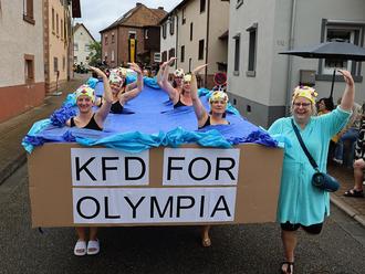 Ein besonderes Highlight waren die Frauen der Esthaler kfd, die sich mit einem Augenzwinkern als Synchronschwimmerinnen präsentierten und sich startklar für die nächste Olympiade zeigten. Ebenfalls mit dabei waren die Quad- und Trikekinder-Vorderpfalz, die mit ihrer Teilnahme auf kostenlose Mitfahrgelegenheiten für benachteiligte Kinder aufmerksam machten.