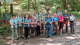 Lambrecht. (wk) An der Planwanderung am Sonntag beteiligten sich rekordverdächtige 21 Wanderer und Wanderinnen, die sich auf den Weg nach Dimbach machten. Dimbach ist eine Ortgemeinde im Landkreis Südwestpfalz und gehört der Verbandsgemeinde Hauenstein an. Wanderführer Bernhard Schmidt muss sich lange zurückerinnern so eine große Gruppe bei einer „Sonntags-Planwanderung“ geführt zu haben. Der „Dimbacher Buntsandstein Höhenweg“ wird in den Beschreibungen mit seiner Länge von ca. zehn Kilometer und ca. 400 Höhenmeter als mittelschwer eingestuft, erfordert aber absolute Trittsicherheit.