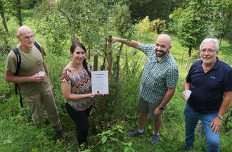 Die Baumpatenschaft wurde mit einer Urkunde belegt, die Wolfgang Mildner für den Arbeitskreis Streuobstwiese Bohnenäcker geferitgt hatt. Darauf ist vermerkt, dass dieser „Eckertauer“ Apfelbaum am 11.11. 2020 auf dem Grundstück Plan-Nummer 603 mit der Baumnummer 211 gepflanzt worden war. Das Paar darf die Früchte des Baumes nutzen, soll ihn aber auch ab und zu besuchen und zudem empfahl der Bürgermeister dem jungen Paar, bei Problemen Gespräche mit ihrem Baum zu führen, der sicherlich wieder für Einklang und Harmonie in der ehelichen Zweisamkeit sorgen werde.
