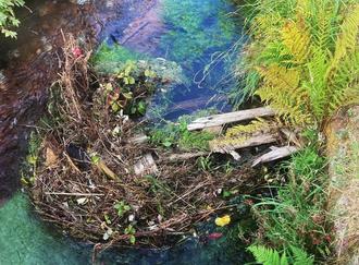 Der Oberlauf des Speyerbachs war von jeher der sauberste Teil des fast 70 Kilometer langen Speyerbachs und er ist es im Raum Elmstein bis heute noch mit geringster Belastung, wovon man sich angesichts des klaren Wassers überzeugen kann. Sehr zur Freude der Gäste und Einheimischer leben wieder Bachforellen und Krebstiere im Speyerbach. Umso ärgerlicher ist es, wenn offenbar Anlieger ihren Grünschnitt, sei er vom Rasen oder von Hecken stammend, einfach in den Speyerbach werfen. Das Fließgewässer durch das Tal mit zahlreichen Windungen verfügt jedoch nicht über eine große Fließgeschwindigkeit und so sammelt sich der Unrat als „Treibgut“ bei anderen Unterliegern des Baches, so in diesem Fall an Grundstücken der Elmsteiner Hauptstraße 12-14. Speziell landen Gras und Heckenschnitt am Rand des sich schlängelnden Baches und wenn sich hier noch zusätzlich anderes Treibgut wie Teile von Holzpaletten angesammelt haben und sich leere „Flaschenpost“ hinzugesellt, ist schnell ein Stau gebildet.