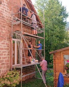 Lambrecht. (ao) Am Samstag, dem 24.08.2024, haben wieder ehrenamtliche Mitglieder und Freunde vom Förderverein Seniorenhaus Lambrechter Tal e.V. für den Erhalt des Sandsteinhauses rund 29 Arbeitsstunden aufgebracht. Am Samstag, dem 06.09.2024, ab 09:00 Uhr findet der letzte Verfugungseinsatz für dieses Jahr statt. Helfer sind herzlich willkommen. Mit etwas Glück sind dann alle Sandsteinfugen überarbeitet. Die Verfugungsaktionen haben sich dann über 8 Jahre hingezogen. Anfänglich arbeitete der Förderverein an den Innenwänden; nach der Indienststellung wurden die Arbeiten an der Außenfassade fortgeführt.