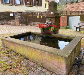 Der Klosterbrunnen mit seinem historischen Brunnentrog und dem modellierten Brunnenstock in Lambrecht steht im Mittelpunkt des Brunnenfestes des Verkehrsvereins.