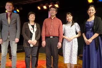 Sie repräsentieren „Die Kinder von Fukushima“: Wolfram Blank (Rezitation), Fumiko Nishino-Friedewald (Rezitation), Genya Kai (Klavier), Kei Suzukí (Sopran), Rie Mattil (Sopran).