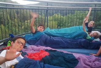 In den folgenden Ferienwochen gab es ein weiteres Angebot für GrundschülerInnen und auch Angebote für alle ab der 5. Klasse. Alle diese Angebote waren in diesem Jahr sogar kostenfrei, weil entsprechende Anträge zur Finanzierung im Rahmen des Aktionsprogrammes der Landesregierung „Aufholen nach Corona“ gestellt und bewilligt wurden. Für GundschülerInnen gab es in der vierten Woche ein Outdoor-Programm zur Resilienzförderung „Das macht mich stark“ mit Lehmbau, Fotoworkshop, naturpädagogischen und weiteren Elementen. Dies war ein Kooperationsprojekt von Schulsozialarbeit im Tal und familienorientierter Gemeinwesenarbeit im Trägerverein „Offene Jugendarbeit“ der VG Lambrecht. Für alle ab der 5. Klasse gab es einen Ausflug nach Annweiler zur Lama-Wanderung, einen Lernort „Nachhaltigkeit“ am Haus der Nachhaltigkeit in Johanniskreuz (mit einem tollen waldpädagogischem Programm), der Kletterpark in Kandel wurde besucht und Fußballgolf wurde wieder auf dem Soccer-Park-Parcours in Dirmstein gespielt. Ein besonderes Highlight war der 2-Tages-Ausflug zum Biosphärenhaus in Fischbach bei Dahn, wo es einen Outdoor-Kochworkshop gab, eine Fledermaus-Wanderung in der Dämmerung und zum guten Schluss die Übernachtung auf dem Baumwipfelpfad in luftiger Höhe. Nach dem gemeinsamen Frühstück und weiteren Erkundungen ging es wieder nach Hause. Alle waren begeistert. Abgerundet wurde das Juz-Sommerferienprogramm durch das Juz-Sommercafé donnerstags-nachmittags und einem Diabolo-Workshop.