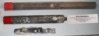 Britische 4 lbs (1,7 kg) Stabbrandbomben. Über 400.000 Bomben dieser Art wurden allein in der Nacht vom 5. auf den 6. September 1943 über den beiden Industriestädten abgeworfen.