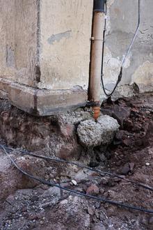 Wo sicherlich Handarbeit notwendig gewesen wäre, nahm der Maschineneinsatz keine Rücksicht auf die Fundamentierung der Pfeiler, es brach ein Fundamentstein aus mit der Folge, dass die Weiterarbeit eingestellt werden musste.
