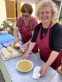 Kulinarischer Renner des Brunnenfestes waren die „Dampnudle mit Grumbeersupp“, angeboten von Liesel Lang und Renate Konrad.
