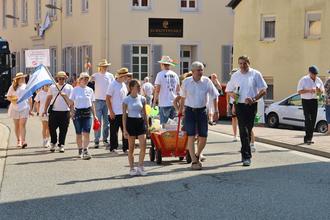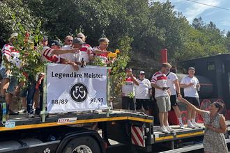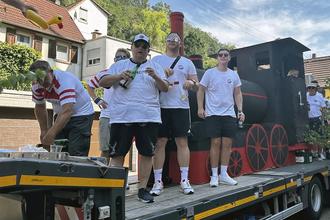 Ein weiteres Highlight des Umzugs war der FC Wacker, der seine Fußballerfolge auf einem großen Gefährt präsentierte. Im Schlepptau führte der Verein eine beeindruckende Dampflokomotive mit, die bereits beim Esthaler Kerweumzug für Aufsehen gesorgt hatte.
