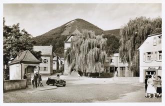 Die beiden großen Trauerweiden, die damals das Bild des Platzes prägten, sind heute verschwunden – geblieben ist jedoch der besondere Charme dieser Aufnahme, die ein Stück Lambrechter Stadtgeschichte lebendig werden lässt.