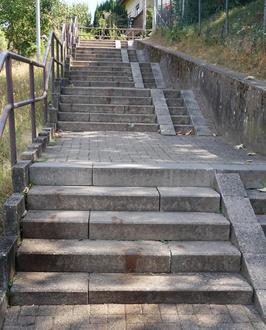 Am oberen Ende der Treppenanlage zur Johann-Casimir-Straße stand jahrelang eine Ruhebank, die jetzt entfernt wurde.