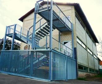 Die Sommerferien wurden genutzt, um die Fluchttreppe an das Schulhaus Esthal anzubauen.