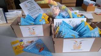In der kleinen Schultüte befinden sich ein Lesezeichen-Gutschein für einen kostenlosen Büchereiausweis, ein Mini-Bilderbuch, das Neugier auf die Welt der Buchstaben wecken soll und ein Lesespaß Radiergummi.