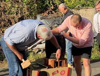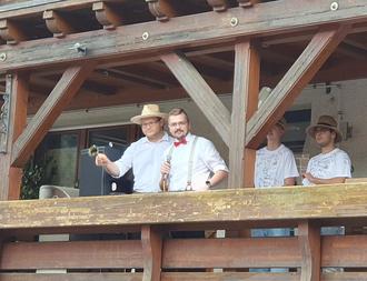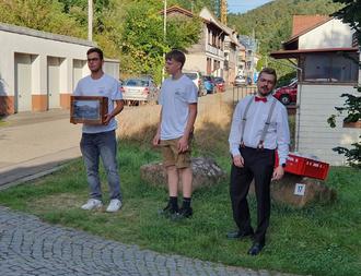 Die Kerwe begann traditionsgemäß mit der feierlichen Ausgrabung. Unter dem Glockengeläut und dem traditionellen Ruf der Kerwebuben „Wem gehört die Kerwe?“ hob Kerwepräsident Marvin Moser das Fest an der Brücke offiziell aus der Erde. Zahlreiche Gäste hatten sich versammelt, um das Spektakel mitzuerleben und das eigens vom Bürgermeister gebraute Freibier zu probieren – ein besonderes Fruchtbier, das mit Früchten aus dem eigenen Garten verfeinert wurde.