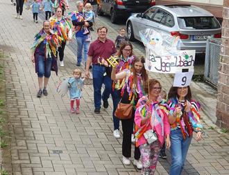 Am Sonntagmorgen sorgte ein Gottesdienst unter Begleitung des Posaunenchors Soli Deo Gloria für einen besinnlichen Start in den Tag. Doch schon bald folgte der nächste Höhepunkt: der traditionelle Kerweumzug. Zwölf farbenfrohe Laufgruppen zogen unter musikalischer Begleitung des Musikvereins Sembach durch die Straßen. Wie es zur Iggelbacher Kerwe inzwischen fast zur Tradition geworden ist, klarte der Himmel pünktlich zum Umzug auf, obwohl es zuvor geregnet hatte, und die Sonne begleitete das fröhliche Treiben.