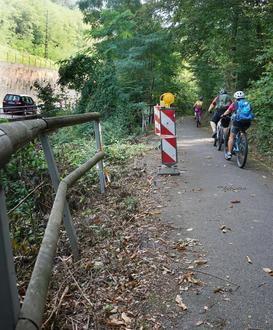 Der Radweg zwischen Lambrecht und Neustadt ist auf Lindenberger Gemarkung durch einen Böschungsabbruch zum Speyerbach beschädigt und muss erneuert werden.