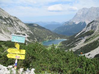 Die erste größere Wanderung stand dann am Donnerstag auf dem Programm. Mit dem Wanderbus fuhr man zur Talstation der Ehrwalder Almbahn. In gut zehn Minuten brachte die Umlaufbahn die Gruppe hoch zum Tiroler Haus und der Ehrwalder Alm auf etwas über 1500 Meter Seehöhe. Erst auf einem breiten Fahrweg, übergehend auf einen etwas schmäleren Wanderweg, marschierte man über die Seebenalm zum herrlich in die Bergwelt eingebetteten Seebensee auf 1657m. Vom südlichen Seeufer genoss man erst einmal das großartige Panorama mit dem Seebensee im Vordergrund und dem gewaltigen Zugspitzmassiv im Hintergrund, dass sich ganz toll im See spiegelte. Danach nahm man die letzten gut 250 Höhenmeter Anstieg hoch zur am Drachensee gelegenen Coburger Hütte unter die Füße. Von hier oben konnte man noch einmal die spektakuläre Aussicht auf den Seebensee mit dem Zugspitzmassiv aus der „Vogelperspektive“ bestaunen. Nach einer ausgiebigen Hüttenrast machte man sich wieder an den „Abstieg“. An der Seebenalm legte man noch einen Zwischenstopp, zum Auffüllen des „Elektrolythaushaltes“, ein. Weiter folgte man dem Fahrweg, vorbei am Aussichtspunkt „Talblick“ und an „Gangshofers Rast“, um schließlich auf dem „Koatigerweg“ wieder zur Bergstation zu gelangen. Die Ehrwalder Bergbahn brachte dann alle Wanderer wieder gut nach Ehrwald hinunter.