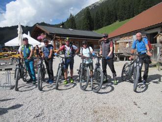 Am Freitag stand eine „Weltpremiere“ der bisher seit 1993 durchgeführten AH-Wandertage auf dem Programm. Man folgende dem Lockruf des Hype „E-Bike Boom“. Als Ziel wurde die „Auffahrt“ zur schönen „Tuftlalm“ ins Visier genommen. Sechs von den neun „AH-Kickern“ haben sich für die Bikertour entschieden. Für die drei „Fußgänger“ ging es von der Unterkunft „Ehrwalderhof“ über den „Kerletalsteig“ hoch zur Tuftlalm. Die „Radler“ (alkoholfrei) führte der erste Weg erst einmal zum Fahrradverleih „Radlgaudi“ in Ehrwald, wo die reservierten E-Bikes in Besitz genommen wurden. Nach einer ausführlichen Einweisung ging es mit E-Bike und Helm ausgestattet auf in Richtung Biberwier. Auf dem schönen breiten Panoramaweg durch einen Lärchenwald konnte man sich mit den Fahrgewohnheiten, wie Gangschaltung, Bremsen, etc. …, des E-Bikes vertraut machen. Von Biberwier fuhr man durch das „Moos“ im Talkessel von Ehrwald nach Lermoos. Hier war dann Schluss mit lustig. Vom Ortsende in Richtung Heiterwang wurde die Auffahrt zur „Tuftlalm“ angegangen. Nach 5 Kilometer bergauf fahren erreichte man, fast gleichzeitig mit den Wanderern, die „Tuftlalm“. Gemeinsam nahm man die Sitzplätze im Außenbereich der Alm ein und genoss den Aufenthalt auf der toll über Lermoos gelegenen „Käse- und Speckalm“. Bevor es wieder hieß Rückweg antreten stattete man der Aussichtsplattform (Viewpoint), in unmittelbarer Nähe der „Tuftlalm“, noch einen Besuch ab. Von hier hatte man nochmals eine ganz tolle Aussicht auf die, den Ehrwalder Talkessel umrahmenden Berge. Danach ging es für die Wanderer, sowie für die „E-Biker“ auf dem asphaltierten Zufahrtsweg wieder hinunter nach Ehrwald.
