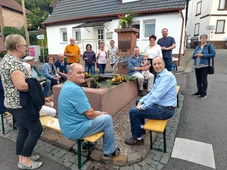 Lambrecht. (ck) Am ersten Septemberwochenende 2025 feierte der Verkehrsverein Lambrecht wieder sein traditionelles Brunnenfest. Zur Eröffnung am Samstag, 6. September, begrüßte die Vorsitzende Christine Klein die Gäste, die sich bei einem Glas Sekt rund um den festlich mit Blumen geschmückten Gradschankbrunnen versammelt hatten. Sie kündigte an, dass der Erlös des diesjährigen Festes für die Instandsetzung des Brunnens verwendet wird. Dieser ist an der Vorderseite bereits zweimal beschädigt worden und inzwischen undicht, sodass ständig Wasser durch den Sandsteintrog nach außen sickert.
