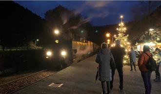 Einfahrt Kuckucksbähnel in Bahnhof Elmstein - Weihnachtsdorf