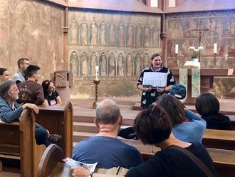 Pfarrerin Sarah Schulze führt kenntnisreich durch die Historie des Gotteshauses