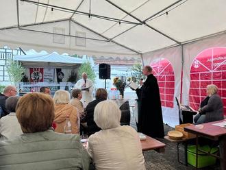 Der Sonntag begann festlich mit dem Kerwegottesdienst im Festzelt, gestaltet von Gemeindediakon Matthias Vorstoffel und Gemeindereferent Michael Kolar, musikalisch begleitet von Dorina Schmidt am Keyboard. Daran schloss sich ein zünftiger Frühschoppen mit Weißwurst und Brezeln an, der für bayerisches Flair sorgte.