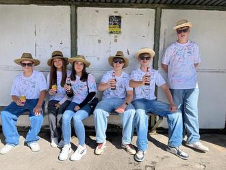 Kurze Verschnaufpause für die Iggelbacher Kerwejugend nach dem Umzug