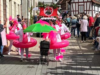 Auch die Senioren-AG Iggelbach, die in diesem Jahr ihr 25-jähriges Jubiläum feiert und sich seit einem Vierteljahrhundert um die Grünpflege in und um Iggelbach kümmert, war mit dabei. Ebenso die Line-Dance-Gruppe des TSV Lambrecht unter der Leitung von Heidrun Müller, die mit flotten Tanzschritten das Publikum begeisterte. Für einen farbenfrohen Höhepunkt sorgten die „Flamingo-Girls“, die mit ihrer pinken „Pink Power“ für viel Aufsehen sorgten. Komplettiert wurde der Umzug durch die Jugendfeuerwehr sowie die Spielgemeinschaft SG Elmstein/Iggelbach, die auf einem großen Gefährt mitfuhr.