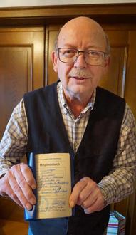 Stolz präsentiert Günther Semmelsberger sein Parteibuch, das vor 54 Jahren von seinem Vater unterschrieben wurde, dem damaligen Elmsteiner Bürgermeister.