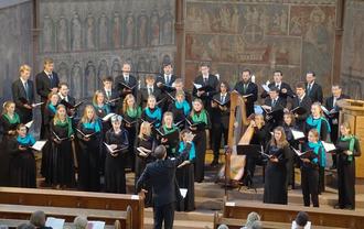 Die Evangelische Jugendkantorei der Pfalz eröffnete ihr Konzert mit Kyrie aus Missa super „Dixit Maria“ von Hans Leo Hassler (1564-1612), für Chor und Harfe, es folgte „Ave verum corpus“ von Edward Elgar (1857-1934). In der Tradition der damals sehr populären „Parodiemesse“ entwickelte Komponist Johannes Eccard (1553 – 1611) das „Kyrie“ aus den ersten acht Takten des Chansons „Mon coeur se recommande à vous“. Als triumphale Himmelfahrtshymne erklang von Paul Isom (*1959) „King of all ages“ für Chor und Harfe. Als Solistin spielte Birke Falkenroth „The Nightingale“ für Harfe von Deborah Henson-Conant (*1853) einer amerikanischen Komponistin und Jazzharfenistin.