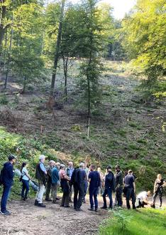 Start des Waldbeganges nach der Begrüßung durch Stadtbürgermeister Andreas Ohler war der ehem. Festplatz im Beerental, hier wurde zunächst über die gestiegene Nachfrage von Brennholz durch Selbstwerber berichtet. Waren es bisher zwischen 10 und 15 Interessenten, kletterte die Nachfrage nach Brennholz im vergangenen Jahr auf über 70 Anfragen. Weil nur ein begrenztes Kontingent für Brennholz zur Verfügung steht, musste eine Beschränkung auf fünf Festmeter pro Haushalt ausgesprochen werden. Bestellungen sind bis 1. November möglich. Bevorzugt ist Hartlaubholz, das für 75 Euro pro Festmeter bereitgestellt wird, Nadelholz kostet 50 Euro je Festmeter. Bedauerlich ist der Holzdiebstahl, der aus der Luhrbach gemeldet wurde, wo zwei komplette Polter widerrechtlich abgefahren wurden.