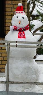 Der reiche Schneefall am Wochenende bot sich besonders bei Familien mit Kindern an, gemeinsam einen Schneemann zu bauen. Die Arbeit begann damit, zunächst eine kleine Kugel zu formen, die dann so lange über den Boden gerollt wurde, bis der Ball die gewünschte Größe für die unterste, größte Kugel erreicht hat. Darauf wurde die zweite kleinere Kugel gesetzt und die Krönung stellte das Aufsetzen des Kopfes dar. Auch die Statik des Schneemannes war zu beachten, damit der Schneemann stabil bleibt und auch einige Zeit des Tauens überstehen kann. Dieses Lambrechter Kunstwerk in der Gartenstraße wurde mit einer FCK-Mütze dekoriert, samt FCK-Schal. Als Nase diente eine Karotte, für die Augen wurden runde Steine verwendet. Leider war diesem Schneemann nur ein kurzes Überleben möglich, steigende Temperaturen ließen das Kunstwerk umstürzen.