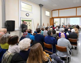 „Ich bin überwältigt!“, begann Helmut Seebach seinen Vortrag. „Schön, dass so viele Leute hierhergekommen sind! Wenn mein Stadtbürgermeister mir die Chance gibt, ein Referat zu halten, dann kommen vielleicht 12 Leute.“