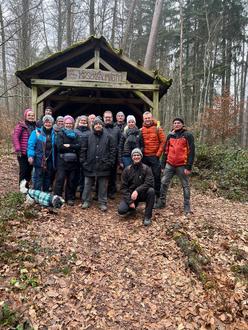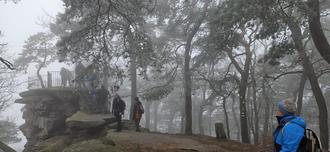 Iggelbach. (MF) Trotz Temperaturen im unteren 1-stelligen Bereich, fanden sich am 18.01.2026, immerhin 14 unerschrockene Wanderer auf dem Wanderparkplatz bei Frankweiler zum Einstieg in das neue Wanderjahr des PWV Iggelbach ein, um sich von Sven und Heike Krauß zum Orensfelsen, an der südlichen Weinstraße, führen zu lassen. Stetig bergauf erreichte man die Kirschbaumhütte, welche an einer Wegkreuzung lag und förmlich zur kurzen Getränkepause einlud. Nach weiteren Höhenmeter gab der dichte Nebel das Naturdenkmal Orensfelsen (564,5 Hm) mit seiner Aussichtsplattform, preis. Eine Fernsicht gab es nicht, jedoch Nebel und Raureif zauberten eine mystische Stimmung um die Felsformation im Pfälzerwald. Nicht weit entfernt traf man auf die Landauer Hütte, welche allerdings nicht angesteuert wurde, da man die Einkehr auf der 448 Hm hohen Ringelsberghütte vorsah. Dort angekommen, wärmte eine heiße Suppe, Tasse Kaffee und Wurst die Wanderer, welche dann gestärkt den Rückweg nach kurzer Rast, antraten.