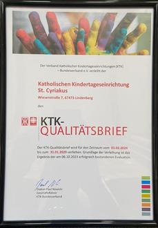 In einer Feierstunde wurde hierbei 27 Kitas der KTK-Qualitätsbrief verliehen, was zeigt, dass das Bistum ein Qualitätsmanagementsystem (SpeQM) eingeführt hat. Dieses unterstützt die katholischen Kitas, die Qualität ihrer Arbeit zu reflektieren, zu dokumentieren und weiterzuentwickeln. Auch die fünf Kitas in Elmstein, Esthal, Lambrecht, Lindenberg und Weidenthal wurden erfolgreich evaluiert und können diese besondere Auszeichnung nun auch mit einem Türschild oder als Urkunde im Eingangsbereich sichtbar machen. Viel wichtiger ist aber dabei, dass die unterschiedlichen Anforderungen zu den evaluierten Qualitätsbereichen in den Einrichtungen konsequent umgesetzt und gelebt werden.