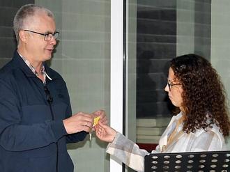 Ortsbürgermeister Marco Fränzel überreichte den Schlüssel für die neuen Räume an KiTa-Leiterin Melike Volz.