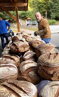 Frisch gebackenes Brot aus dem Holzofen: eine Köstlichkeit, die beim Backofenfest genossen werden konnte zusammen mit Spießrollbraten oder Schweinshaxen.
