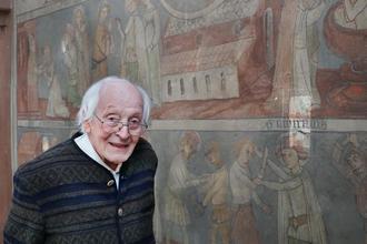 Dr. Kurt Lembach, der unermüdliche, gewissenhafte Wahrer der Zeitgeschichte der Stadt Lambrecht und des Tales, war bis ins hohe Alter sehr rüstig und ist leider im 92. Lebensjahr verstorben. Das Foto (2021) zeigt ihn vor den Wandmalereien der Ostwand der ehem. Klosterkirche.