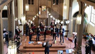 Dann zog die geheimnisvolle Königin von Saba in der Vertonung von Händel durch das Kirchenschiff. Gleich drauf wurde es eng, weil Blechmäuse und Jungbläser die Altarstufen zur „Brass Party“ hinaufkletterten, stürmischen Beifall erntend, dann, -hoppla-, sahen sich altbekannte Kirchenlieder wie „Du meine Seele singe“ und „Bewahre uns Gott“, von jazzigen Rhythmen umgarnt, verbreitete „This little light of mine“ Gospelgroove, bevor die Jungbläser mit „Traumreise“ und „Gut gelaunt“ schwebend meditatives und spritzig-fröhliches nebeneinanderstellten, - das begeisterte Publikum begann mitzuschnipsen und mitzuklatschen, rhythmisch perfekt natürlich.