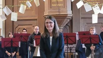 Appenthal. (ul) Ein Wunder? Ja, ein Wunder: 52 Bläserinnen und Bläser, von den Kleinsten, den Blechmäusen bis zu „Senior“ Brass, von der abgrundtiefen Tuba bis zur Piccolo-Jungbläsertrompete, vom Drumset mit Becken und verträumten Chimes bis zu Flügel- und Waldhorn: alle zusammen gestalteten am vergangenen Sonntag, dem 5. Oktober, in der bis auf den allerletzten Platz besetzen Elmsteiner Protestantischen Kirche das glanzvolle Jubiläum 75 Jahre Posaunenchor Appenthal „Soli Deo Gloria“. Von der Blechmaus, die Notenständer und Instrument an den richtigen Platz zu bringen suchte bis zum mächtigen Tutti des gesamten Ensembles, alles war konzentriert im Blick und in den klar zeichnenden Dirigierhänden von Christa Rottmayer, der an erster Stelle Dank gebührt für ein rundum gelungenes Konzert. Kirchenpräsidentin Dorothea Wüst und Verbandsbürgermeister Gernot Kuhn waren gekommen, die Landesverbandschefs Martin Groß und Matthias Fitting berichteten zwischendurch, wie gut es einem gehen kann, wenn man mit den Appenthalern zusammen musiziert und Pfarrerin Sarah Schulze aus Lambrecht verströmte als gewandte Moderatorin zusammen mit Christian Wohlert (beide im Chor aktiv) ansteckende Heiterkeit.