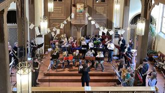 Proben, Gottesdienste, Auftritte, Freizeiten, alles wird, so Matthias Vorstoffel überstrahlt von den Blech-Reisen zu den Kirchentagen, zuletzt der Posaunentag in Hamburg, wo dann gerne mal 24 000 Bläserinnen und Bläser „Flächengold“ gezeigt hätten. Flächengold, das heißt: Trompete, Horn, Posaune werden gemeinsam zum Himmel gestreckt, - die 52 „Soli Deo Gloria“-Akteure zeigten den stehend applaudierenden Zuhörerinnen und Zuhörern, wie das aussieht: Bläserfamilie unter goldenem Blech.