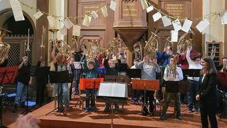 Prasselnden Beifall, ja Ovationen heimsten die Jungbläser und die Blechmäuse unter der Leitung von Thomas Rottmayer ein. Ein Dank, so ein Zuruf aus dem Publikum, soll auch den Eltern gelten, die ihren Kids solche Chancen ermöglichen.