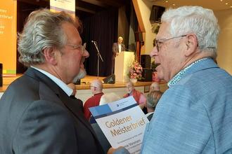 (em) Die Handwerkskammer der Pfalz ehrte mit einem Festakt die Goldenen Meisterinnen und Meister des Jahrgangs 1975. Dazu wurden die “alten“ Meister in das Bürgerhaus Schuhfabrik in Waldfischbach eingeladen. "Drei Dinge machen einen guten Meister: Wissen, Können und Wollen.“ betonte Dirk Fischer, Präsident der Handwerkskammer der Pfalz, in seiner Festrede. Werner Mansmann erwarb sein Wissen in der Lehrzeit bei der Firma Kunz und in seiner Gesellenzeit als Radio- und Fernsehtechniker bei der Firma Bitsch in Lambrecht. Dann unterbrach der Wehrdienst zwar den Wissenserwerb, aber gleich danach ging es zur Bundesfachschule in Karlsruhe. Dort wurde am 25.01.1975 die Meisterprüfung abgelegt. Sein Können und Wollen zeigte Mansmann dann als Konzessionsträger zweier Fachbetriebe und dem Start in die Selbständigkeit am 04.02.1991. Dieses Geschäft betrieb er erfolgreich bis zum 31.12.2016 und zog sich dann in das Privatleben zurück. Jetzt kümmert er sich zusammen mit seiner Frau Ute seinem Garten und beide gehen Wandern oder auf Reisen.