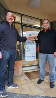 Erstmals hatten am Kerwe-Sonntag zur Bereicherung des Angebotes auf der Gäsbock-Kerwe in Lambrecht Jürgen Köppler und Gerald Hanbuch an der Ecke Markt- und Mühlstraße am Rande des Kerwegeschehens einen erlesenen Weinausschank organisiert. Der gute Zuspruch hat die Initiatoren ermutigt, auch im kommenden Jahr zur Kerwe einen Ausschank anzubieten und diesen sogar mit Sitzmöglichkeiten regelrecht als „Weinecke“ zu erweitern. Den diesjährigen Erlös über 260 Euro hat jetzt Apotheker Gerald Hanbuch an Pfarrer Martin Groß übergeben. Der Betrag fließt zweckgebunden in den finanziellen Grundstock, um im Zuge der Sanierung des Kirchenumfeldes ein neues Eingangsportal in der Westseite der Klosterkirche bei der Friedenseiche zu bauen. Die Kirche kann dadurch behindertengerecht ohne Stufen zu begehen, betreten oder mit Rollatoren befahren werden. Eine Architektin hat bereits mit der Planung begonnen, informierte Pfarrer Groß. Die bauliche Maßnahme kann nicht bezuschusst werden und ist ausschließlich von der prot. Kirche zu finanzieren.